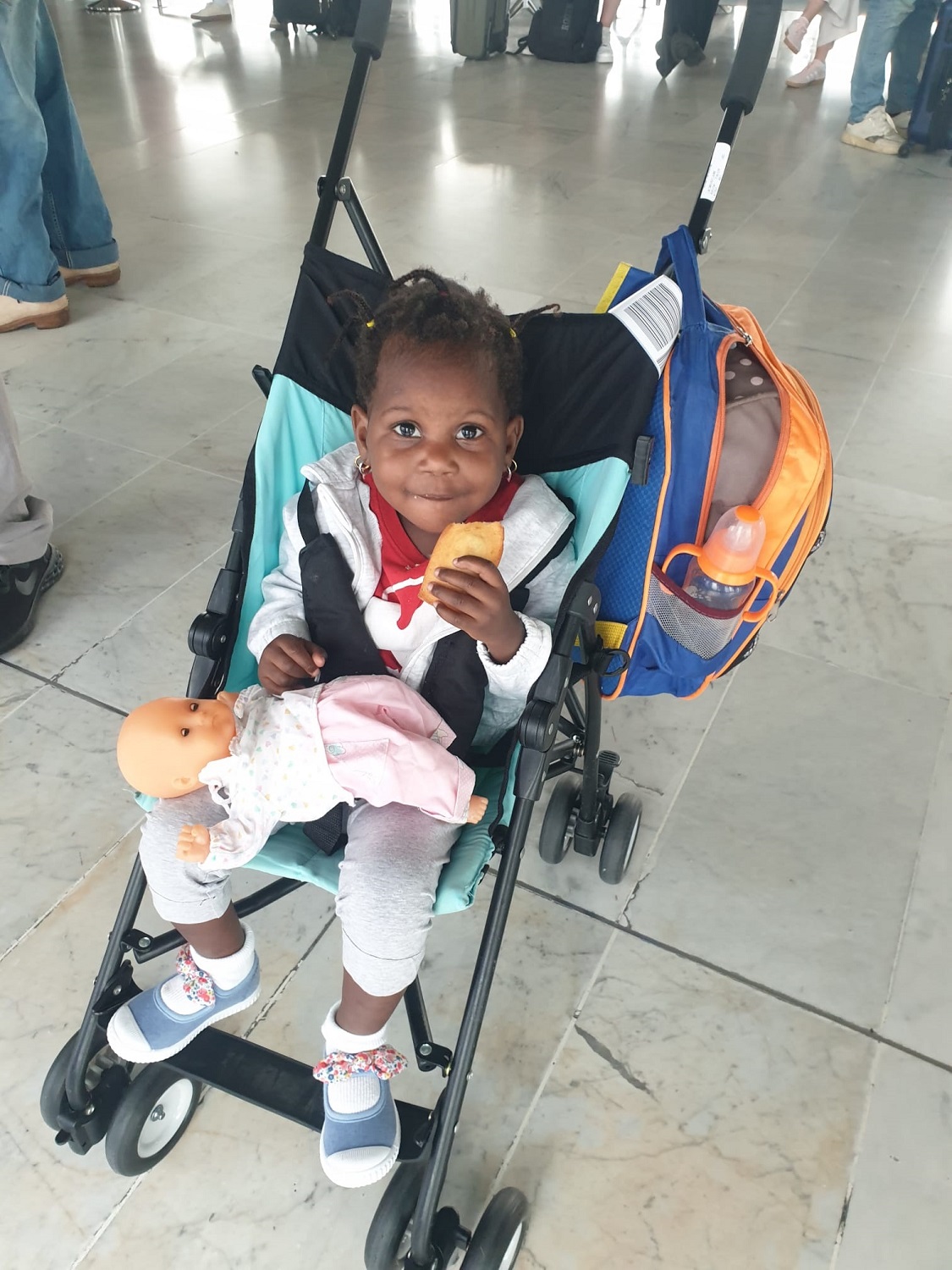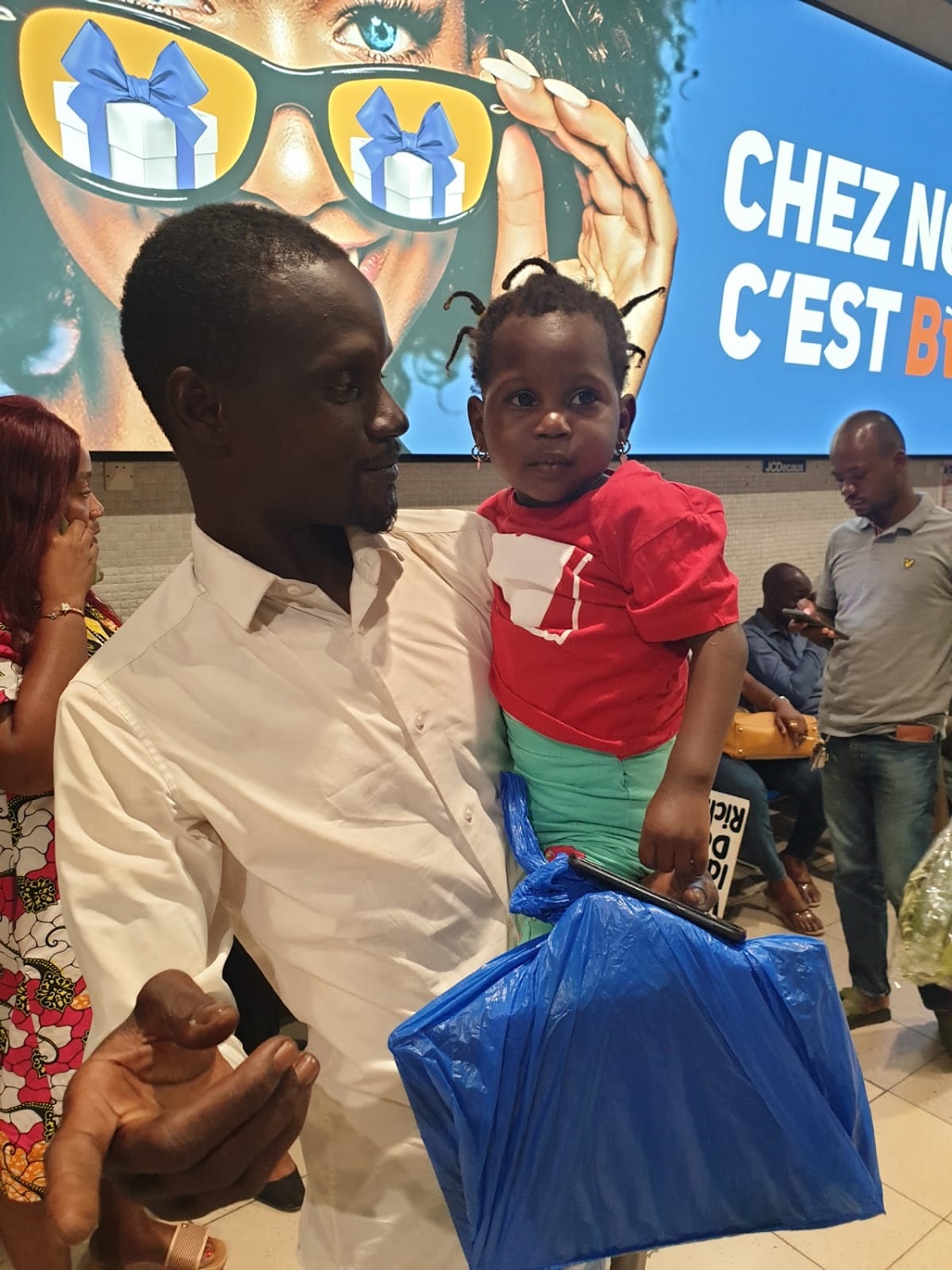 Arrivée à l’aéroport de Ramata retrouvant sa famille