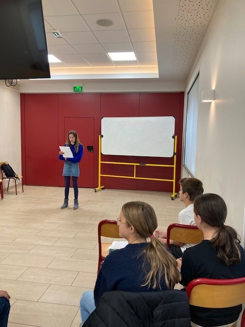 - Les élèves délégués des niveaux 6ème et 5ème ont travaillé des techniques de prise de parole (posture, articulation, ponctuation orale et conviction des propos) afin d’assurer la transmission d’une information lors d’une intervention devant un groupe ou lors d’un conseil de classe. Une mise en situation (réalisation d’un conseil de classe) a permis un rappel à chaque élève des qualités pour être un délégué efficace : être à l’écoute des camarades, prendre correctement une information, participer et animer une réunion en restituant fidèlement la parole.