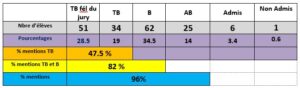 En plus du diplôme du brevet, un diplôme d’excellence a été remis aux 3 élèves ayant obtenu les meilleurs résultats au DNB et aux 5 élèves ayant obtenu les meilleures notes pour chaque épreuve écrite du brevet (français, mathématiques, histoire géographie et sciences).